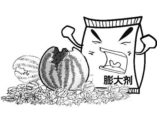 江蘇鎮江丹徒區延陵鎮大呂村40多畝西瓜大棚,就像布下了“地雷陣”,已結滿瓜藤的大小西瓜,還沒有成熟就一個個炸裂開來,有的炸得四分五裂,有的炸得像一朵花。其他瓜農的數十畝西瓜同樣開始滿地“開花”。有瓜農和專家指出,瓜農施用的“膨大增甜劑”是造成爆瓜的原因。 膨大劑,化學名稱叫細胞集動素,屬于激素類化學物質,對植物可產生助長、速長作用,對人體的危害主要是神經系統的危險,能造成兒童腦炎,發育不良,癡呆等。此外,使用膨大劑后的果蔬味道變淡,吃起來口感不好,也不利于長時間儲藏。 吉林大學軍需科技學院食品質量與安全專業教授徐克成認為:膨大劑按規范使用是無毒害作用的,但是如果濫用、大劑量使用膨大劑,是有潛在風險的。我國自引進以來,沒有明確的規范劑量。很多農戶為了利益大量施用膨大劑。農產品檢驗機構不會檢測這項指標。