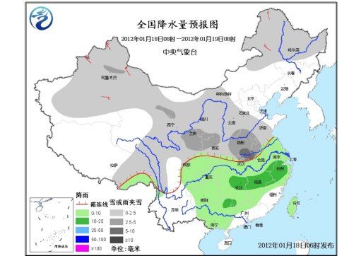 中東部將有大范圍雨雪天氣 18~22日,受一股中等強度冷空氣影響,我國中東部將出現(xiàn)一次較大范圍的雨雪天氣,并伴有4~8℃的降溫。新疆北部、西北地區(qū)東部、東北、華北、黃淮、江淮、江漢及江南北部等地將先后出現(xiàn)小到中雪或雨夾雪,其中西北地區(qū)東南部、華北西南部、黃淮西部、江淮西部、江漢、江南北部及貴州中北部等地的部分地區(qū)有中到大雪,局部有暴雪,貴州中西部的部分地區(qū)有凍雨;南方其余大部地區(qū)有小到中雨,長江中下游附近部分地區(qū)有大雨。 華北東部南部黃淮北部等地有霧 今天早晨到上午,遼寧中部、華北中東部和南部、黃淮北部和東部、江淮西南部、江漢、江南西北部和東南部、四川盆地中部、云南西南部等地有輕霧,其中,京津地區(qū)、山西南部、河北東部和南部、山東西北部、河南北部、陜西關(guān)中平原、福建中西部、云南西南部等地的部分地區(qū)有能見度低于1000米的霧。 未來三天具體預(yù)報 18日08時至19日08時,新疆大部、西北地區(qū)大部、內(nèi)蒙古西部和東部、黑龍江大部、華北西部和中南部、黃淮大部、江淮西北部、江漢北部、西藏東北部、川西高原北部等地有小到中雪或雨夾雪,其中,黃淮西南部、江淮西北部局地有大雪;江淮中東部和西南部、江漢南部、江南、華南北部和西部、西南地區(qū)東部、西藏東南部、臺灣等地有小到中雨或陣雨;新疆北部、內(nèi)蒙古東北部等地有4~6級風(fēng),新疆山口地區(qū)風(fēng)力可達(dá)8級。 19日08時至20日08時,新疆西南部、西北地區(qū)中東部、內(nèi)蒙古大部、東北地區(qū)中西部、華北、黃淮大部、江漢北部、西藏東北部、川西高原北部等地有小到中雪或雨夾雪,其中,西北地區(qū)東南部、黃淮西部局地有大雪;江淮、江漢南部、江南、華南北部和中西部、西南地區(qū)東部、西藏東南部、臺灣等地有小到中雨或陣雨;新疆北部、內(nèi)蒙古東北部有4~6級風(fēng);渤海、渤海海峽將有6~9級的東北風(fēng)。 20日08時至21日08時,新疆西南部、西北地區(qū)中東部、內(nèi)蒙古東北部和西部偏南地區(qū)、華北、黃淮大部、江淮大部、江漢北部、江南西北部、西藏東北部、川西高原北部等地有小到中雪或雨夾雪,其中,華北西部、江淮中西部、江漢北部、江南西北部的部分地區(qū)有大雪,江南西北部局地有暴雪;江南中東部和西南部、華南、西南地區(qū)東部、西藏東南部、臺灣等地有小雨或陣雨,浙江西部局地有大雨,貴州中西部的部分地區(qū)有凍雨;新疆北部、內(nèi)蒙古東部有4~6級風(fēng);渤海、黃海將有7~8級、陣風(fēng)9~10級的東北風(fēng),東海北部海域?qū)⒂?~8級的風(fēng)。 |