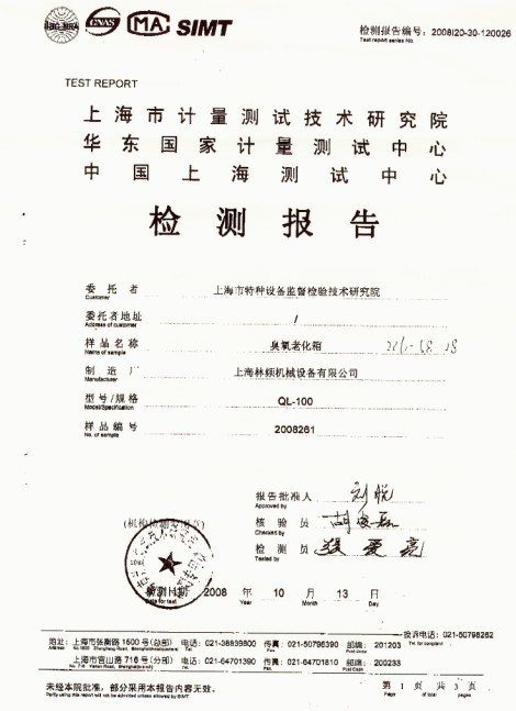 08年8月份,上海市特種設(shè)備監(jiān)督檢驗(yàn)技術(shù)研究院在經(jīng)過(guò)眾多篩選后最終選擇林頻,與我司正式簽約一臺(tái)型號(hào)為QL-100的臭氧老化試驗(yàn)箱,在出廠(chǎng)前嚴(yán)格把關(guān),并已通過(guò)上海計(jì)量院第三方檢測(cè)合格,現(xiàn)已驗(yàn)收合格并已成功交付使用.因?yàn)槲覀儗?zhuān)業(yè),所以值得信賴(lài)!