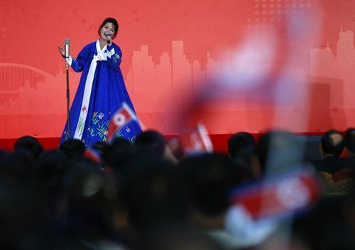 朝鮮主體思想塔受追捧 演員獻(xiàn)唱《紅旗飄飄》